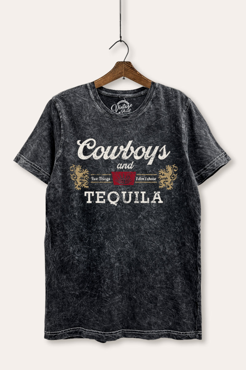 "cowboys & tequila" graphic mineral wash relaxed tee