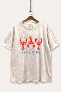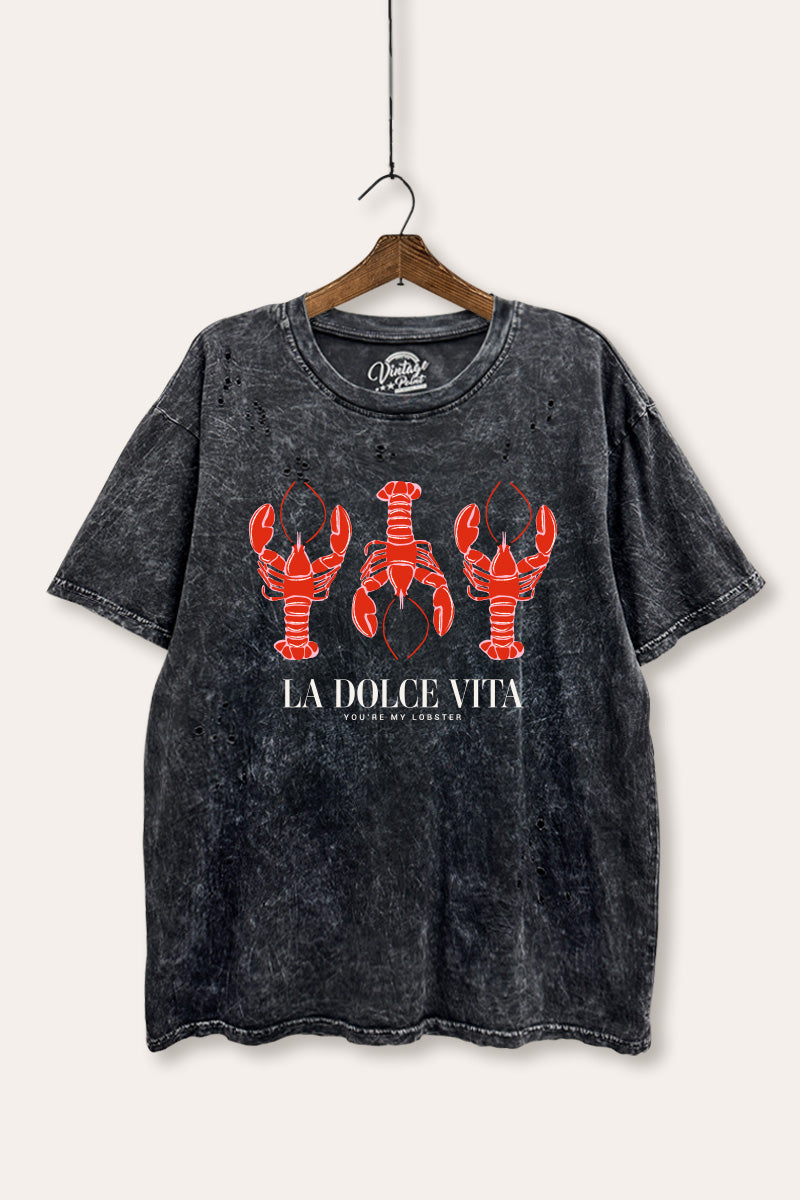 "la dolce vita" lobster graphic mineral wash laser distress tee