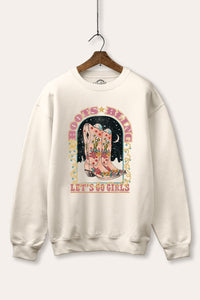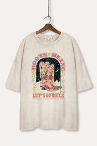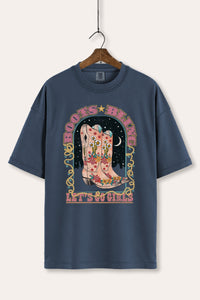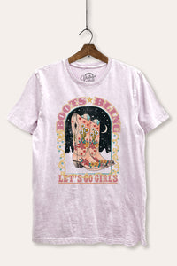 - featuring "let's go girls" and "boots bling" retro typography with cowboy boots graphic