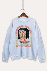 "let's go girls" boots bling boxy graphic crop top