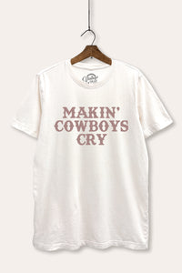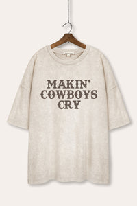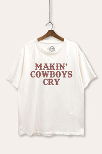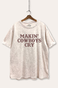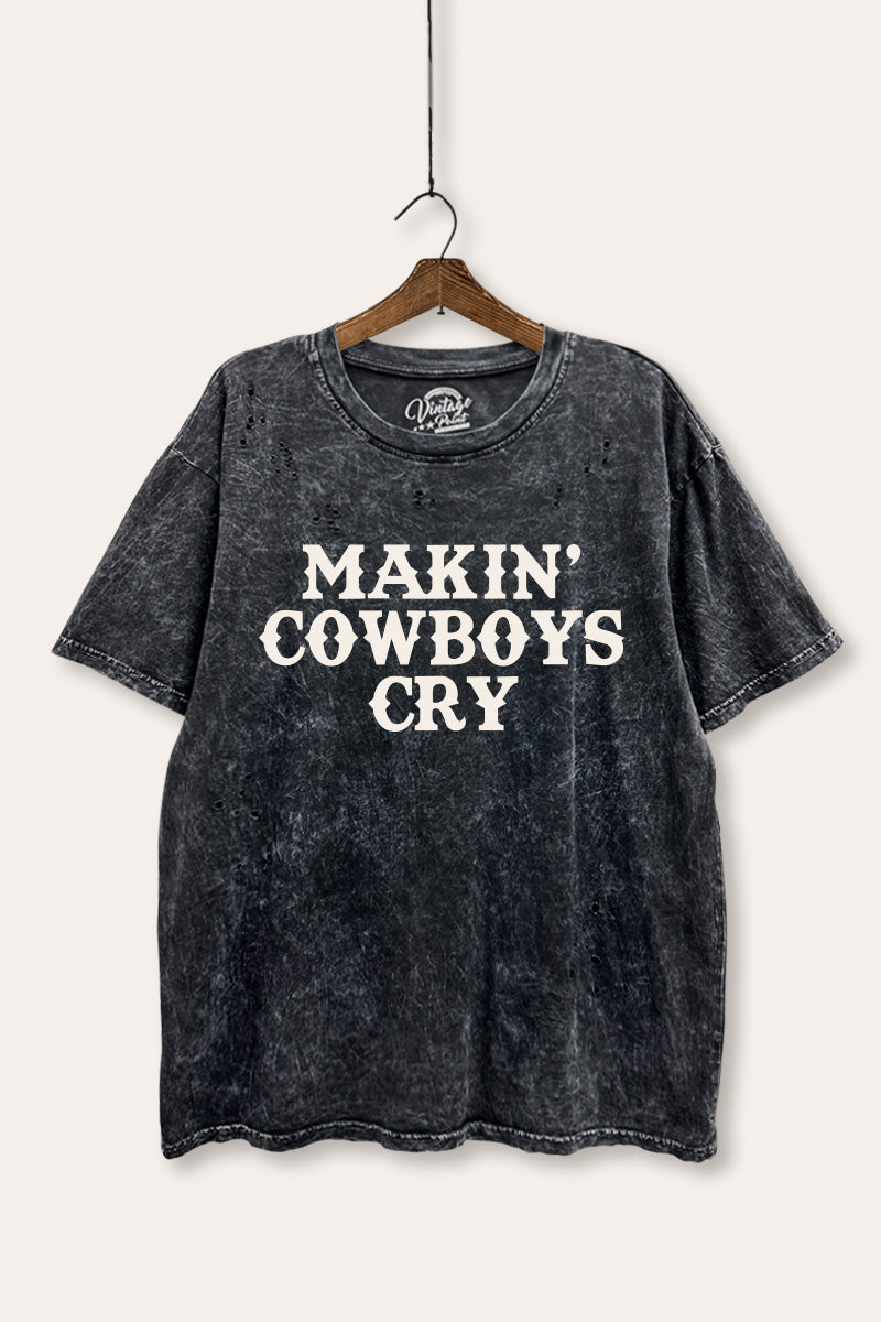 "makin' cowboys cry" graphic mineral wash laser distress tee