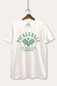 - "pickleball local league champion" typography with paddle graphic