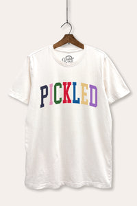 "pickled" rainbow text graphic fleece sweatshirt