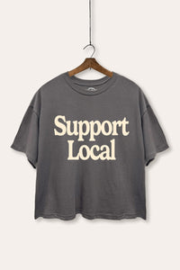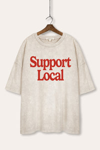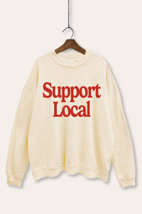 "support local" graphic mineral wash sweatshirt